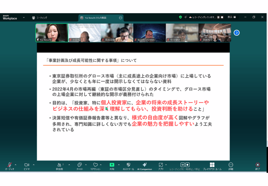 2025年10月例会は、池内優衣会員による『「事業計画及び成長可能性の事項」作成のすすめ』というテーマの講演でした。